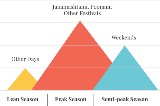Hospitality specifically for Leisure/religious locations is divided into seasons. In the case of Dwarka, there are 3 main seasons.